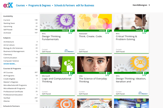 What we easily forget when doing e-learning is also that competition is tremendously high, just because we have entered the digital space. It is even gazillion times higher than when doing off-line-education. Comparing off-line education to online-education is like comparing life on earth to life…probably on the moon. Why take your specific course when there are so many others on Edx, even thousands of possible courses to take digitally instead? Take a look on the picture again. There is already thousans of possible courses on Edx that you can chose from.