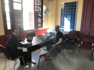 Here is a somewhat blurry picture taken in Cuba, January 2020 (sorry but my own mobile-camera-lens had just broken because I dropped it one day before). It is my colleague Martin Vendel, on the right, that is planning for a possible cross-international project jointly with René Díaz Suárez, to the left.
