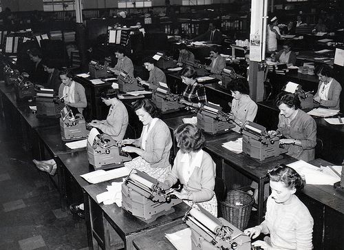 The secretary controlled the typing-process.